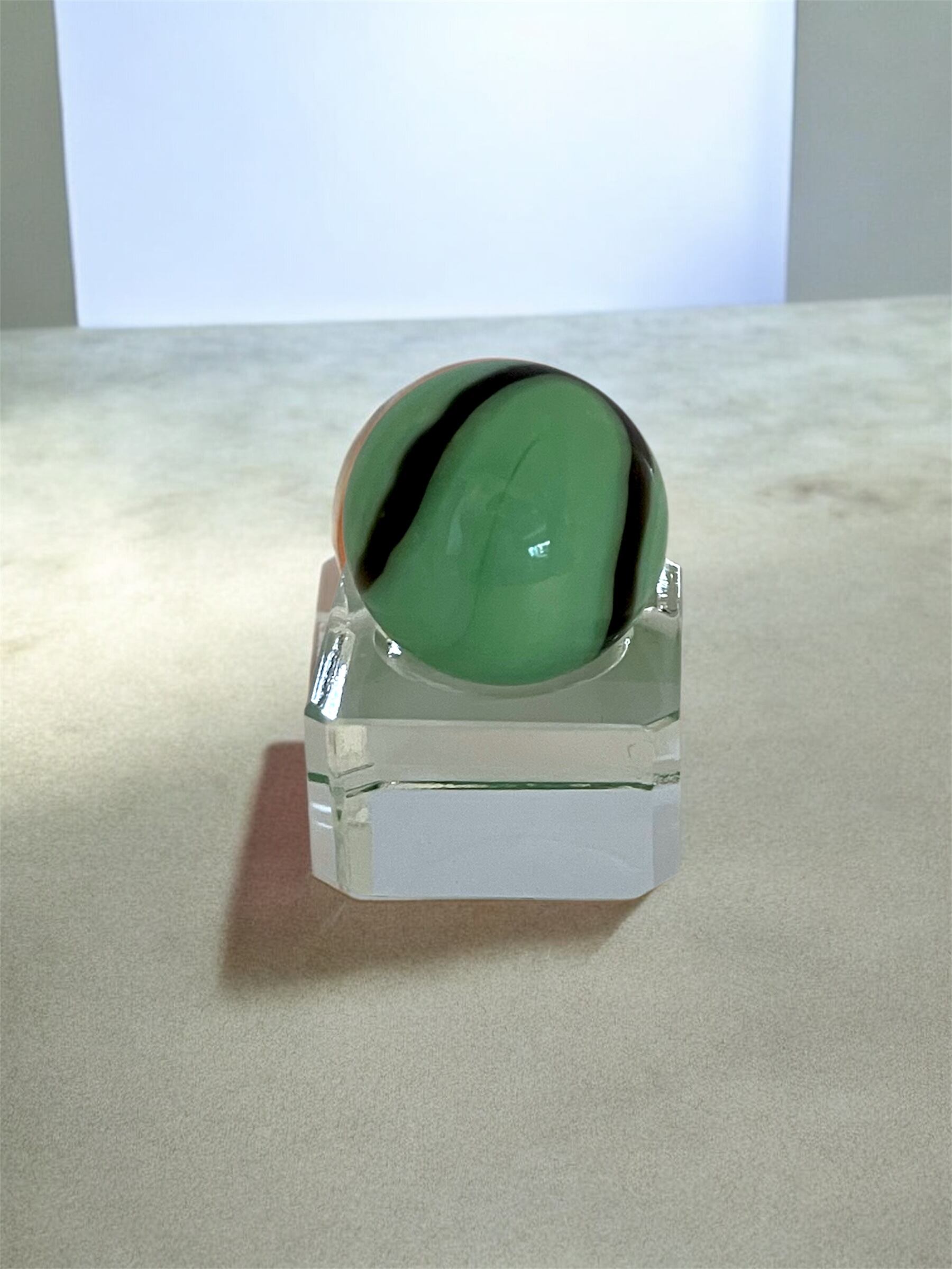 ・20mmのビー玉は、職人による丹念な手作りで仕上げられ、白と緑の美しいデザインが見事に表現されています。それぞれのくまが異なる表情を見せ、選ぶ楽しさを感じる一品です。